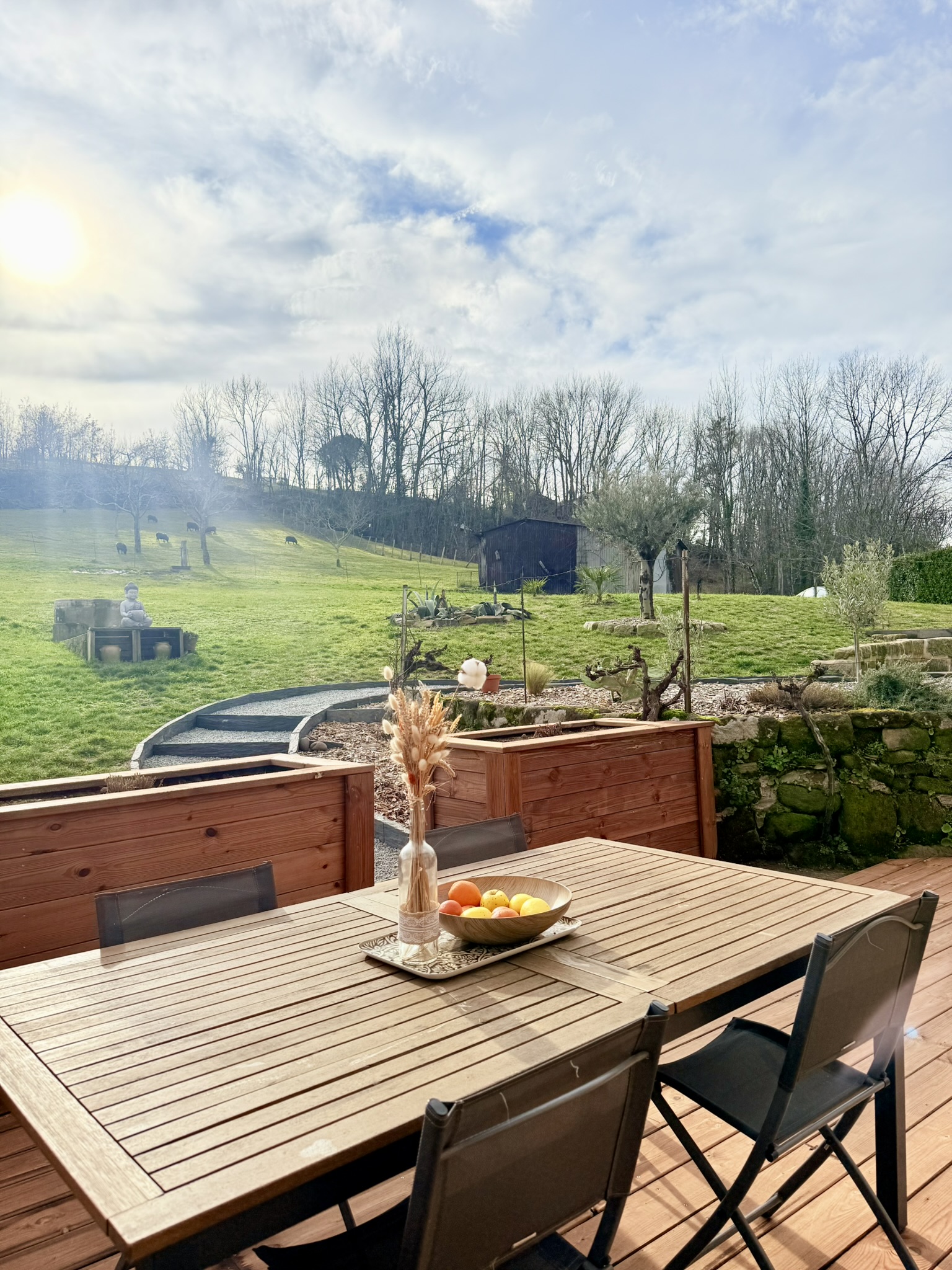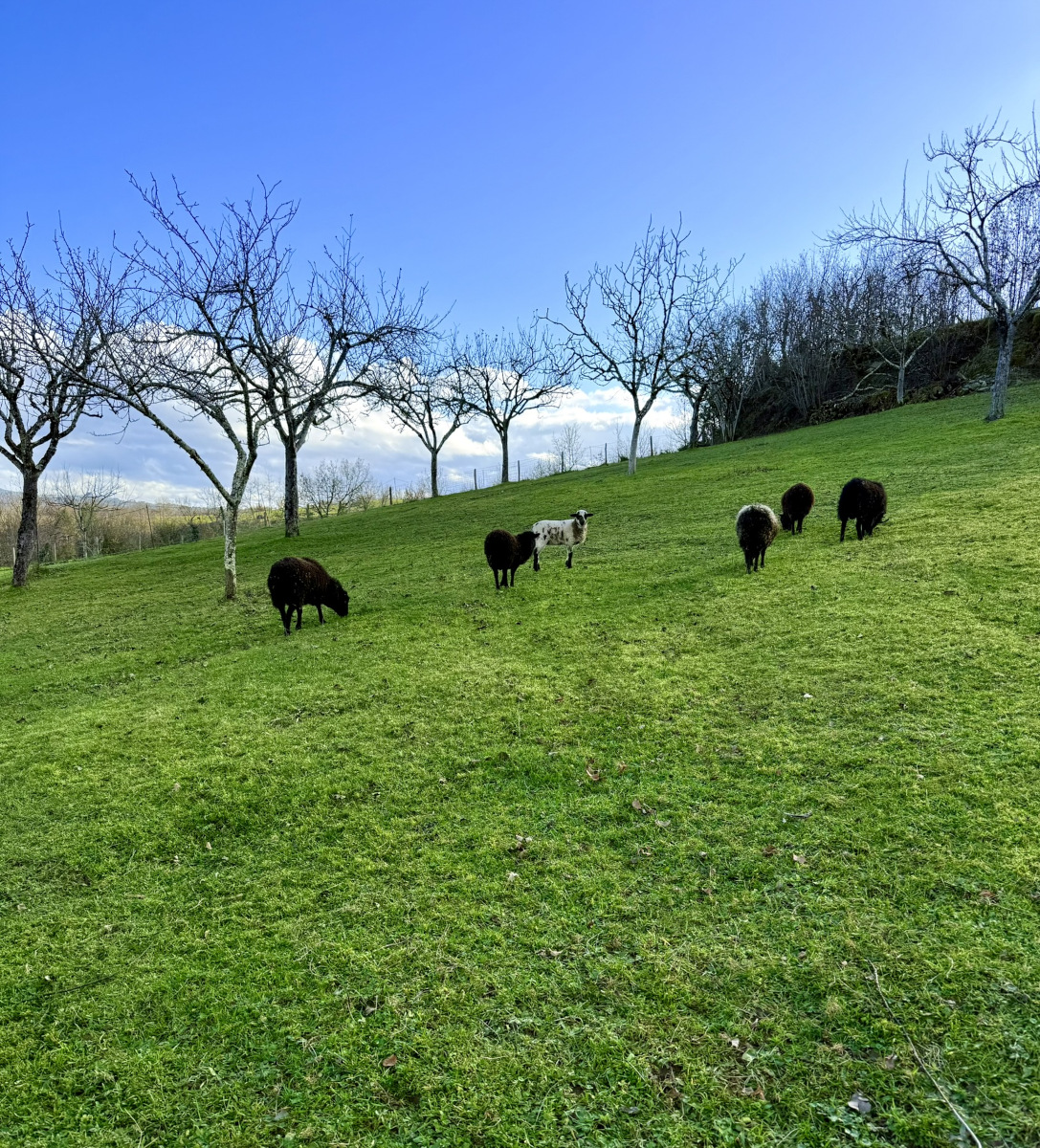 À l’extérieur, le cadre naturel prend tout son sens : nos moutons évoluent paisiblement sur le terrain, offrant un spectacle aussi simple qu’apaisant. Les observer, les approcher ou simplement profiter de leur présence contribue pleinement à l’ambiance relaxante du lieu — un vrai retour à l’essentiel, loin de l’agitation du quotidien.